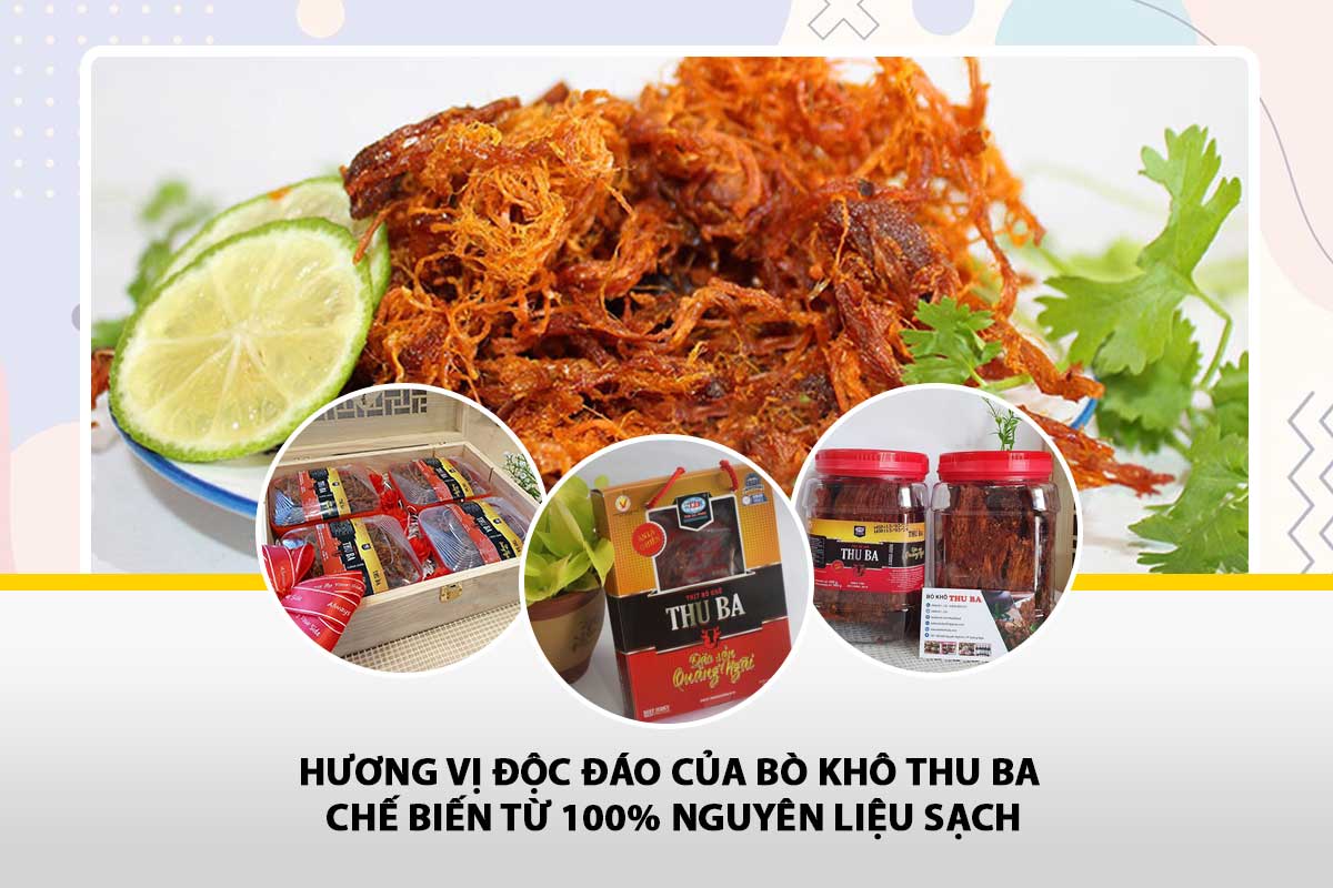 Thương hiệu thịt bò khô Thu Ba nổi tiếng với hành trình 40 năm xây dựng và phát triển đến nay đã đạt được nhiều thành tựu trong sản xuất và chế biến là sản phẩm tiêu biểu của Quảng Ngãi, đạt chứng nhận Ocop 4 sao, hàng Việt Nam chất lượng cao… Bò khô […]